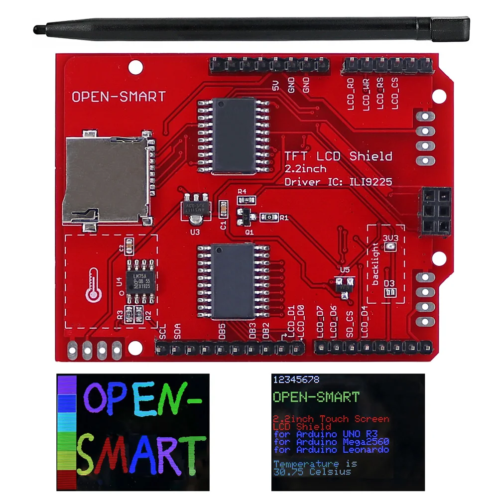 Сенсорный экран LM75, с ручкой и датчиком температуры для Arduino, 2,2 дюйма TFT LCD