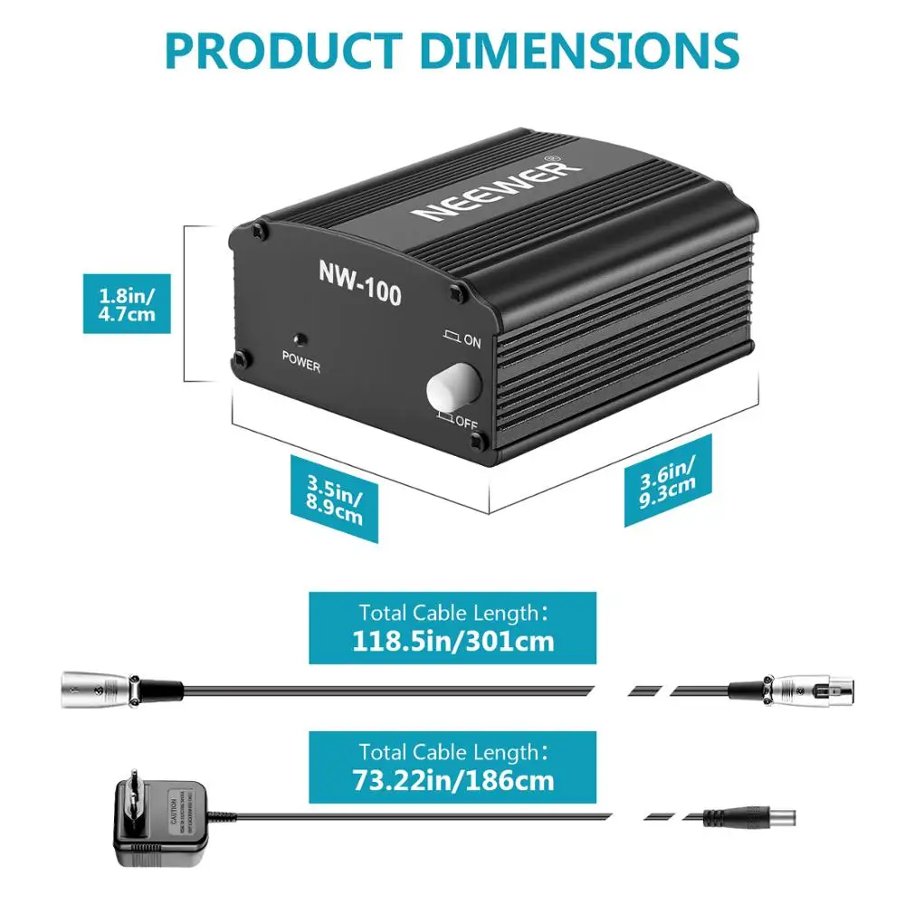 Neewer 1-канальный источник фантомного питания 48 В + USB-кабель, X...