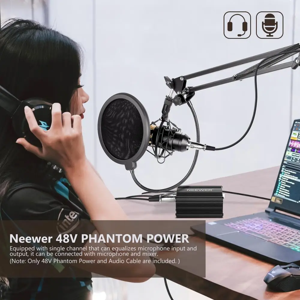 Фантомный источник питания Neewer с европейской вилкой, 220 В, 1 канал, 48 В, адаптер, один аудиокабель XLR для любого конденсаторный микрофон для записи