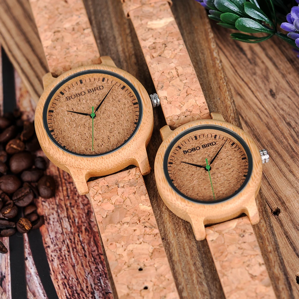 Часы наручные BOBO BIRD Top Couple мужские, деревянные брендовые люксовые, с пробковым ремешком, в подарочной коробке для влюбленных