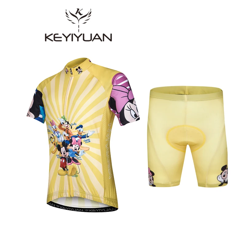 Новинка, Детские комплекты велосипедных Джерси KEYIYUAN, велосипедная одежда с подкладкой для мальчиков и девочек, детские велосипедные шорты, розовые, желтые, синие