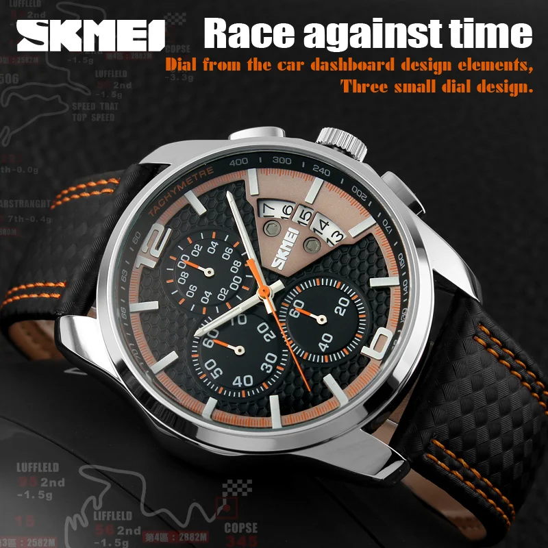 Часы мужские, спортивные, кварцевые, водонепроницаемые, с кожаным ремешком