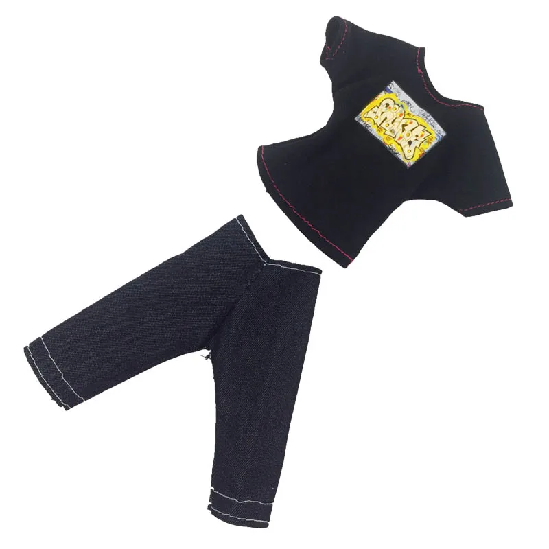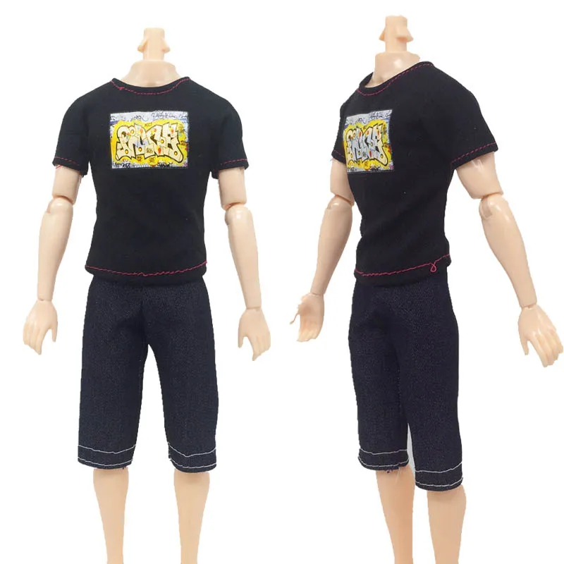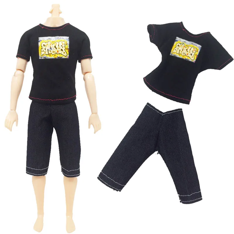 Красивая Повседневная Одежда для куклы Кен, черная футболка + джинсовые штаны, короткие для куклы Барби парень Кэн, Мужская кукольная одежда