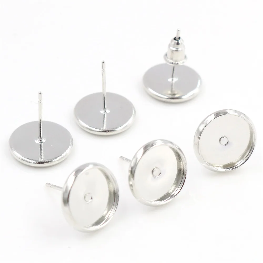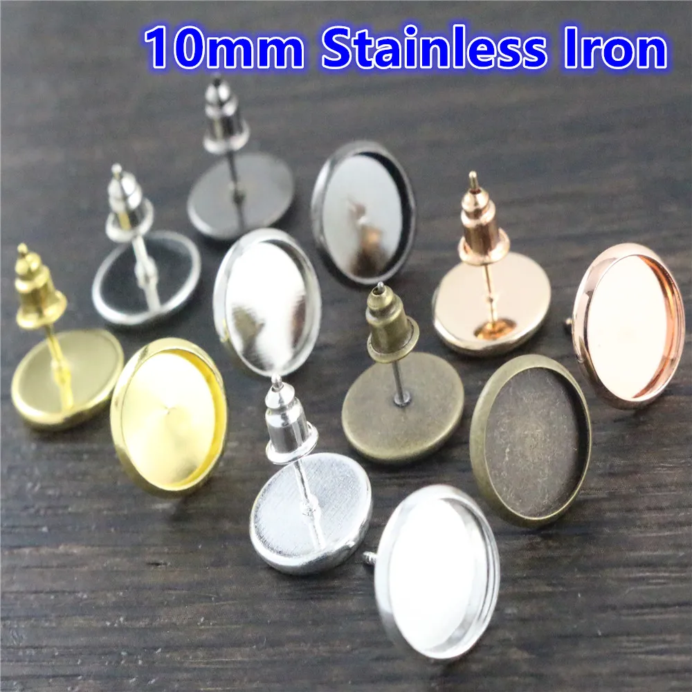 10 мм, 50 шт.лот, 8 цветов, высокое качество, нержавеющая медь, шпильки для сережек (с заглушкой), подходит для стеклянных кабошонов 10 мм