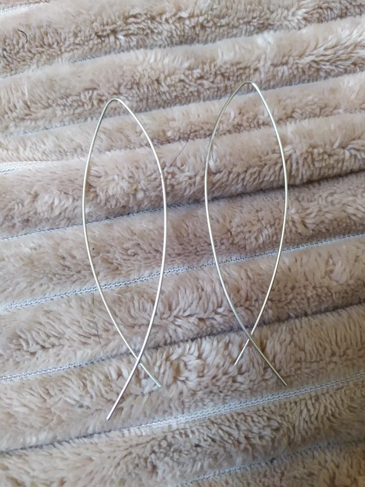 Красивые, минималистичные серёжки. Пришли быстро: заказывала в начале месяца пришло 25-ого. Нужно быть осторожным при надевании, чтобы не погнуть метал. В целом, довольна заказом, но на одной из серёжек слетела краска и немного побита. С продавцом не общалась.