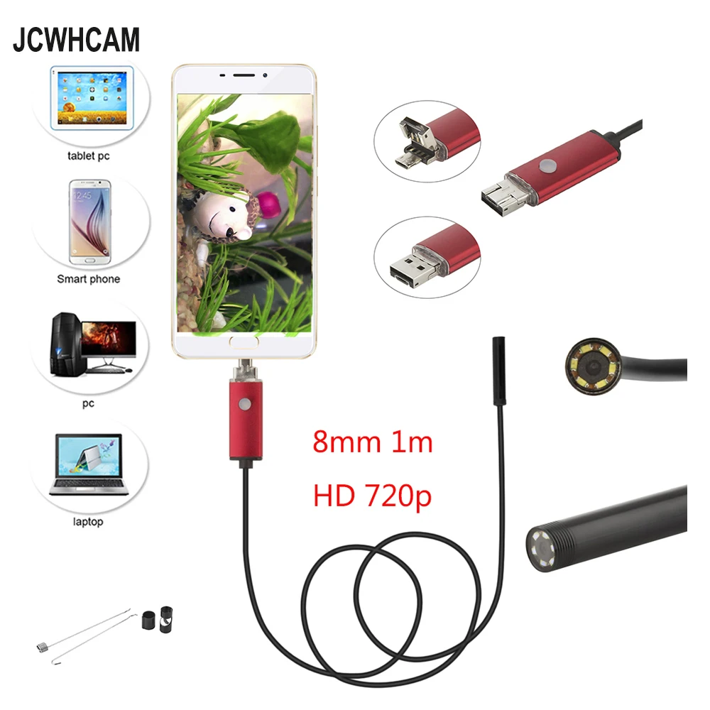 JCWHCAM 8 мм 2.0MP Android USB эндоскоп камера 1 м 720P OTG USB Snake Tube инспекция HD720P бороскоп камера 6LED водонепроницаемая