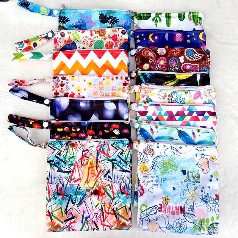 Водонепроницаемая сумка PUL для менструальных прокладок, сумка для тканевые гигиенические прокладки с защелкой, сумка для подгузников с принтом, 22 отпечатка, 6 шт.