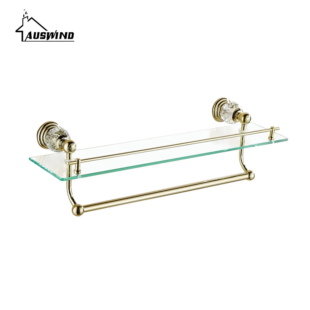 Полированные Золотые Аксессуары для ванной комнаты, украшение для ванной комнаты из белого хрусталя, набор принадлежностей из твердой латуни, двойной держатель для полотенец