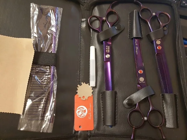 Профессиональные ножницы для груминга собак Purple Dragon, 8,0 дюйма, прямые, изогнутые, филировочные, с острыми краями, для стрижки шерсти животных