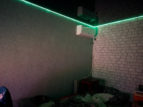 Посылка пришли очень быстро, как и было указано, за две недели. Лента целая, нужной заказанной длины. Поместили по периметру комнаты внизу плинтуса, подключили и все работает. Свет правда очень тусклый, но как для засыпания детишек, само то.