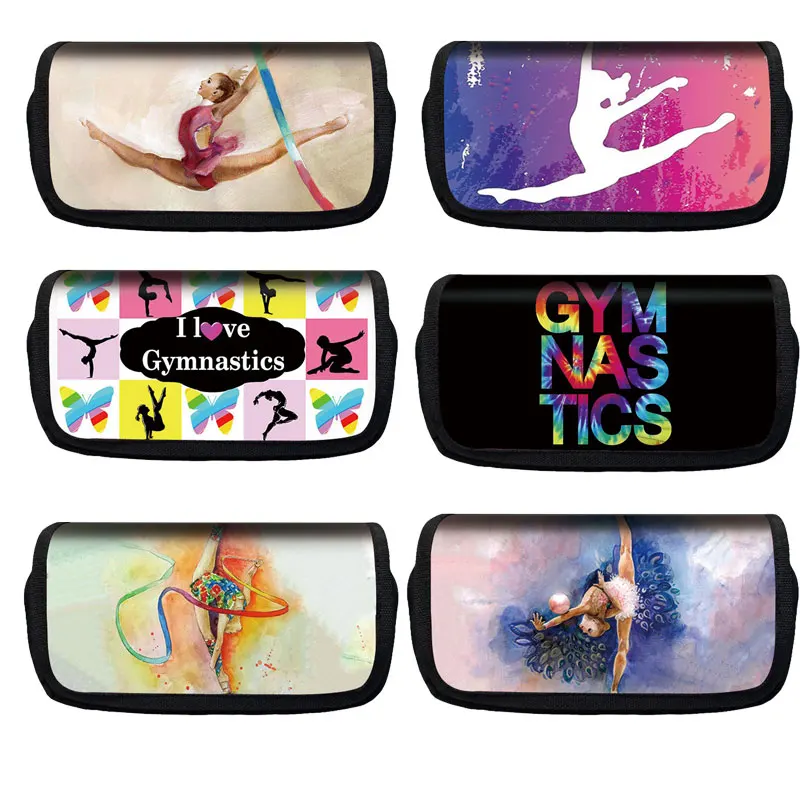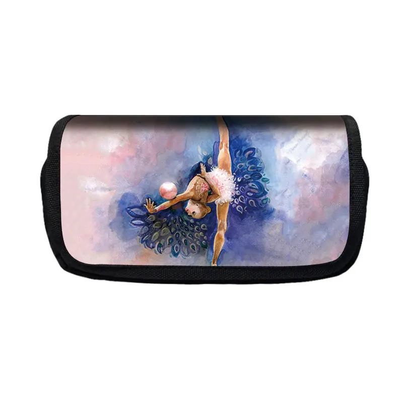 Гимнастические художественные косметички для девочек, мультяшная Детская сумка для карандашей, балерина, красота, макияж, искусственная детская коробка для карандашей