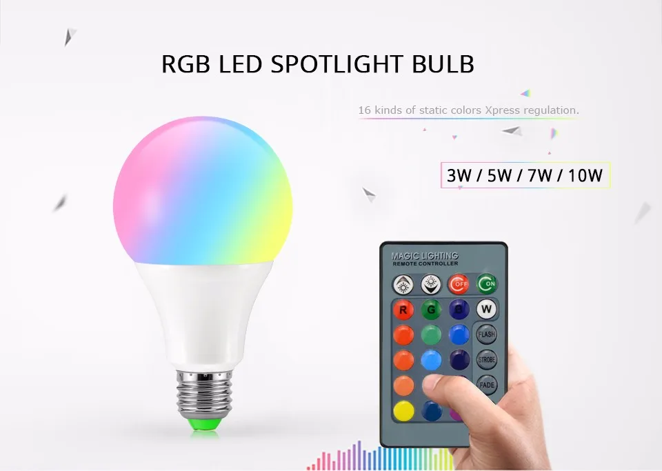 RGB-лампа светодиодная, 5 Вт, 7 Вт, 10 Вт, E27, E14, GU10, AC85-265V, с пультом дистанционного управления