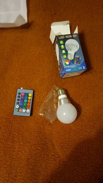 Доставка через 15 рабочих дней после заказа (Бесплатная доставка). Упаковка: ок. Лампочка (требуется 7 Вт, но сделана скорее 5 Вт) и пульт дистанционного управления: ок. Обеспечивает батарею CR2025 или CR2032 для дистанционного управления. Пульт дистанционного управления является инфракрасным лучом, поэтому лампа и пульт дистанционного управления должны быть в поле зрения для работы.