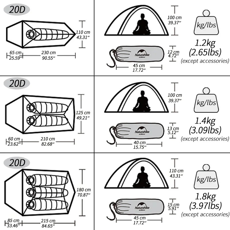 Naturehike Upgraded Cloud Up 2 Ultralight Tent Free Standing 20D Fabric Camping Tents For 2 Person With free Mat NH17T001-T