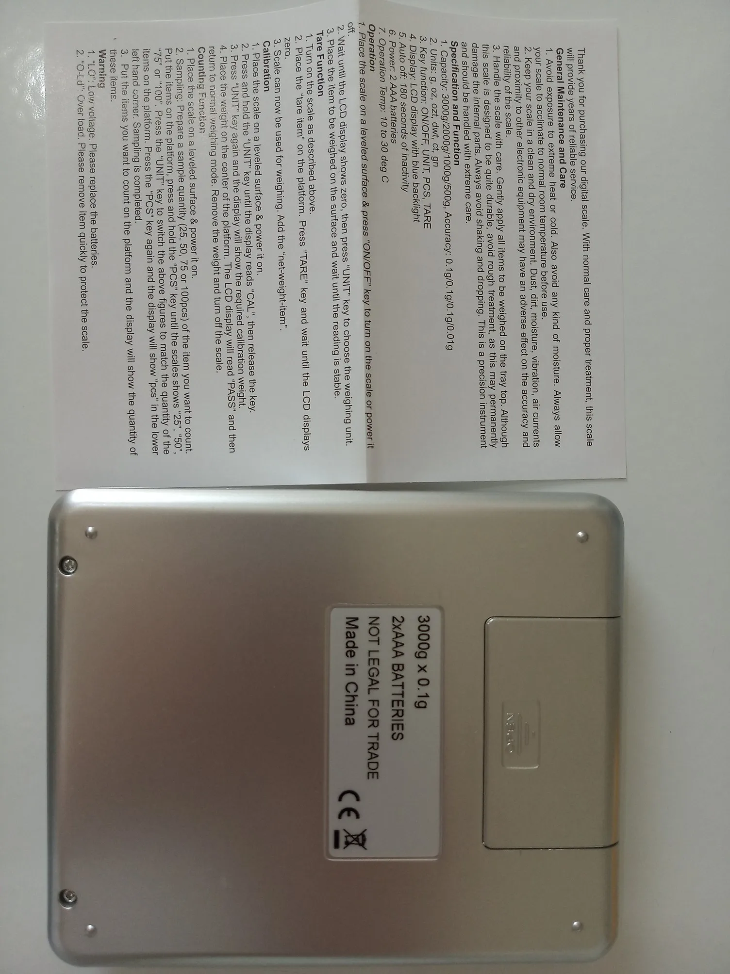 Очень хорошие весы, отлично подходят для взвешивания ингредиентов до 1/10 грамма. Поставляется с розничной упаковкой и 2 маленькими пластинами.