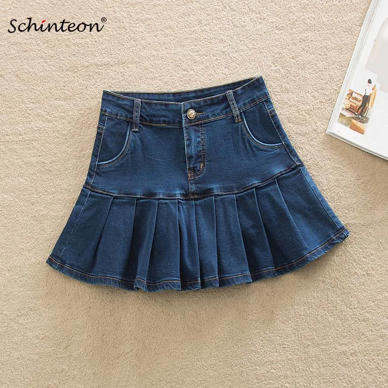 Schinteon женские летние джинсовые шорты мини юбки сексуальные плиссированные юбки с рюшами джинсы высшего качества размер 38 40