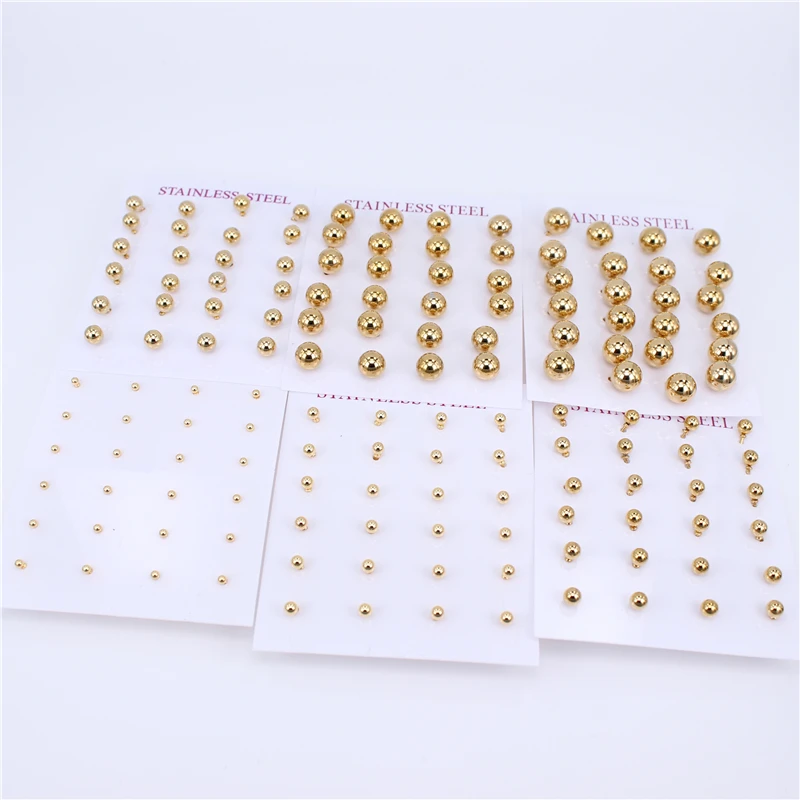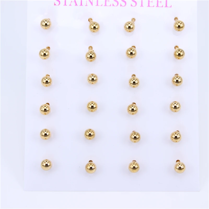 Нержавеющая сталь металлических бусин и серьги-гвоздики из 12 паркомпл. Диаметр 3 мм-8 мм выбор женские серьги не выцветает LH238