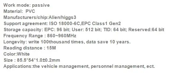 Пассивная карта радиочастотной идентификации LPSECURITY UHF ISO18000-6C, 915 МГц