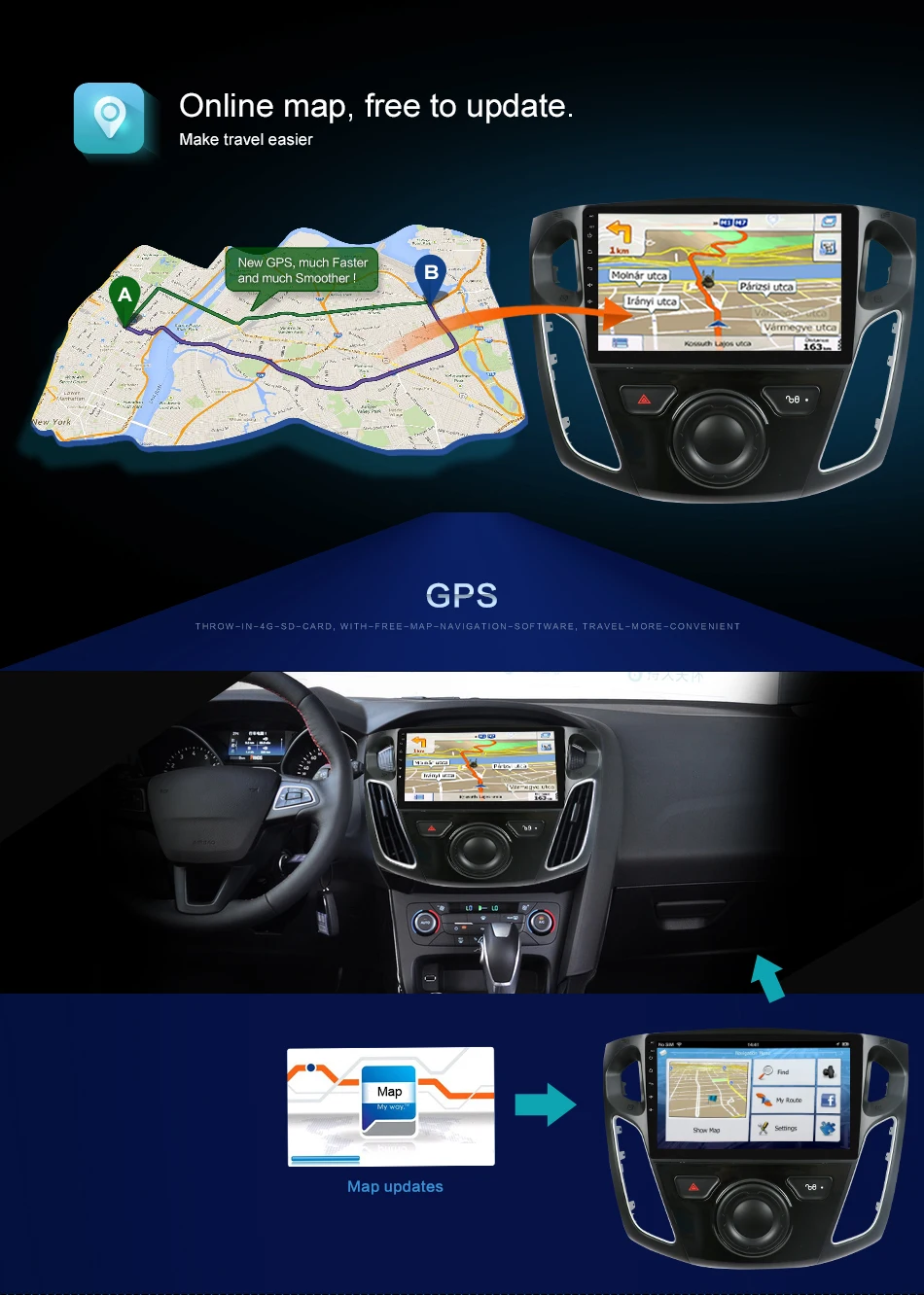 Автомагнитола Bosion 1024X600, DVD-плеер с четырехъядерным процессором 2G, Android 10, GPS, радио, IPS экраном, для Ford Focus 3 2012, 2013, 2014, 2015