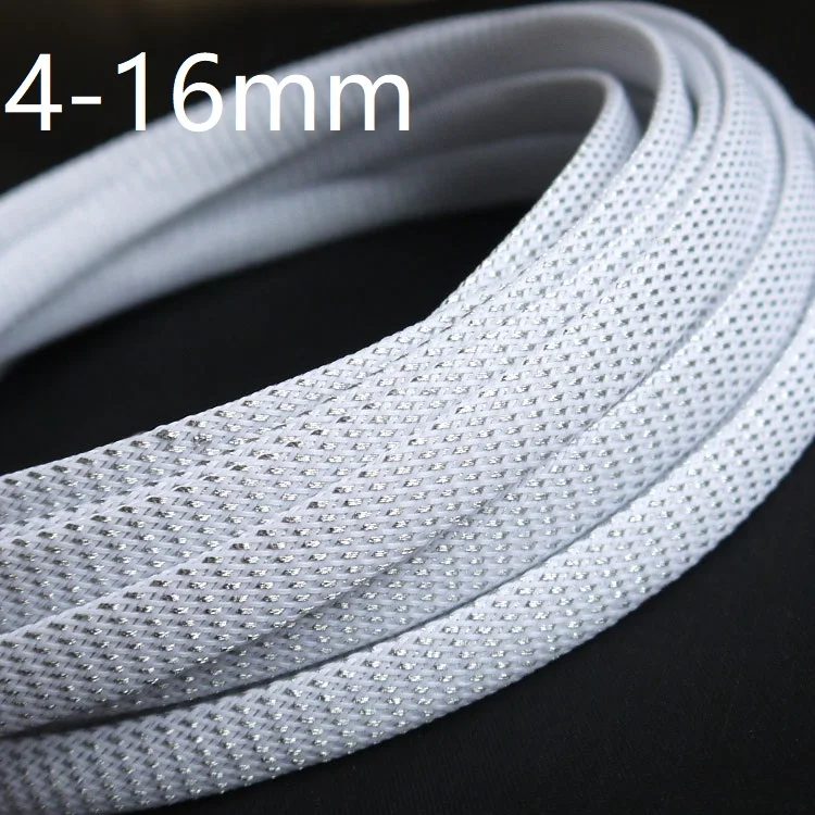 Белая, серебристая плетеная втулка для провода для домашних животных, 4, 6, 8, 10, 12, 16 мм, плотный, изолированный кабель высокой плотности, расширяемая оболочка, цветная