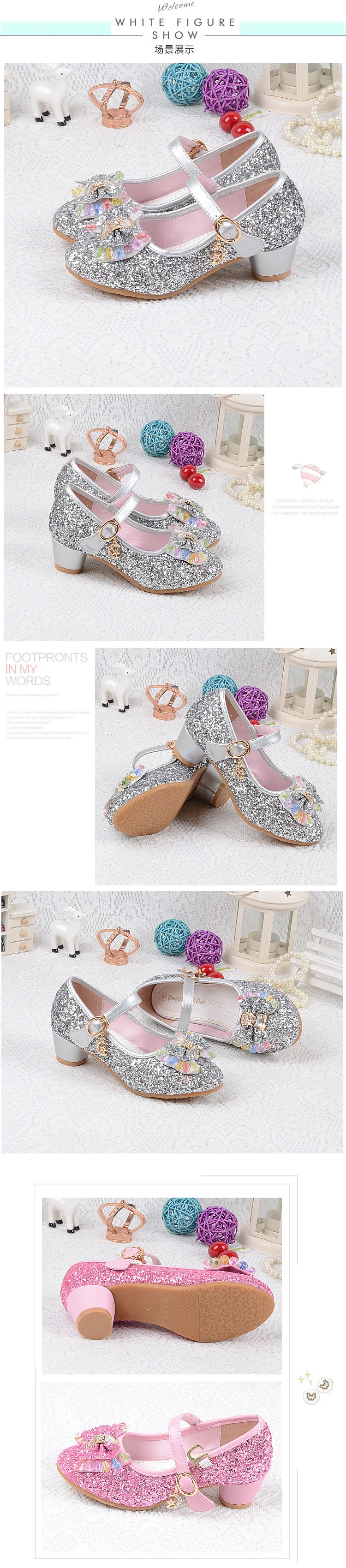 Туфли-лодочки для девочек на высоком каблуке, с блестками