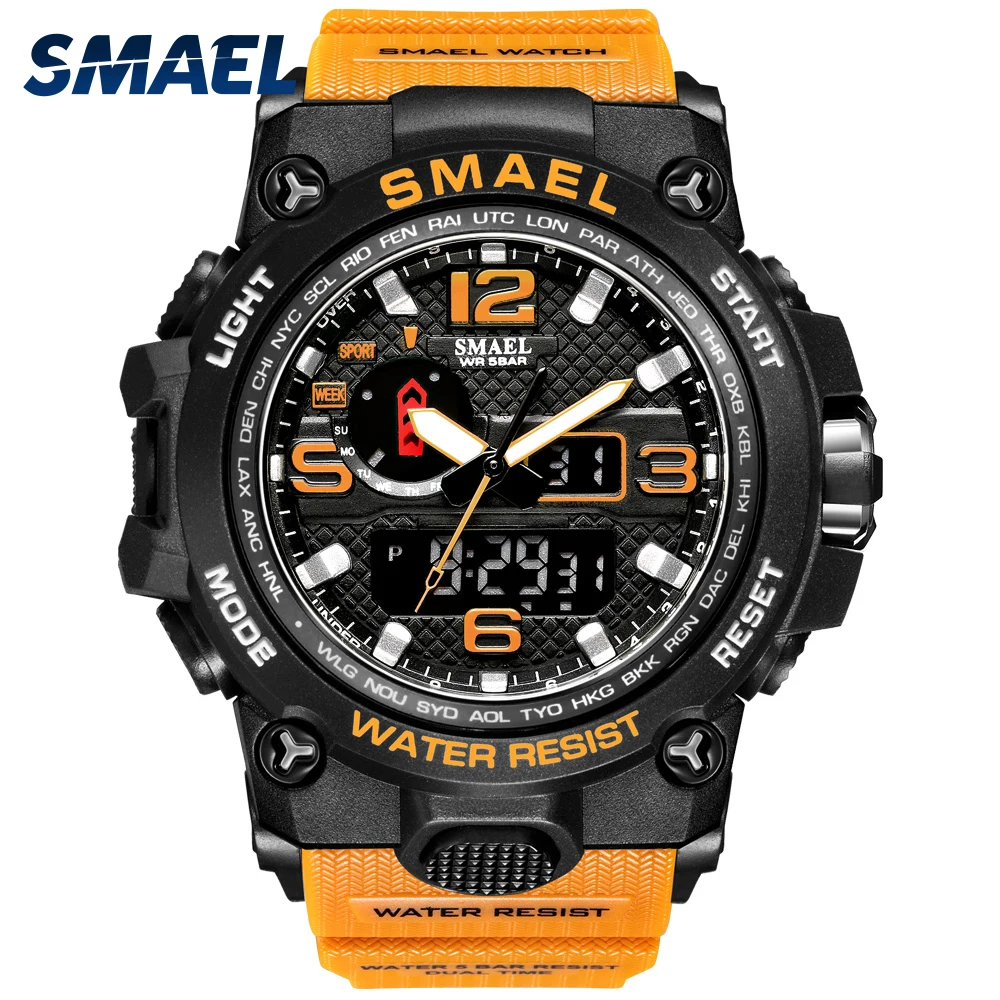 Мужские спортивные часы SMAEL, часы для мужчин, оригинальный дисплей с двойным дисплеем, светодиодная подсветка, электронный секундомер, 1545, популярные часы, Прямая поставка