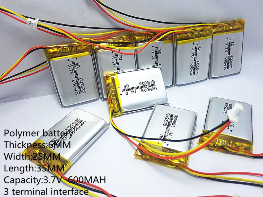 3 Резьбовая полимерная литиевая батарея 602535 3,7 в 600 мАч может ...