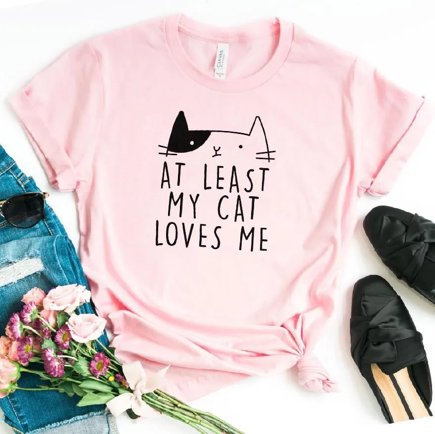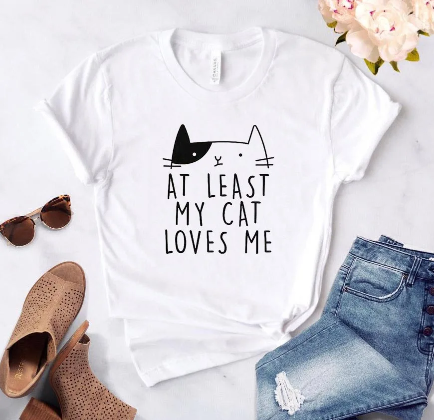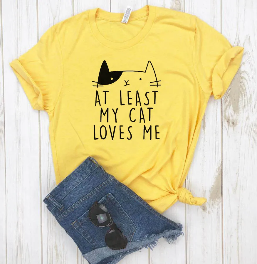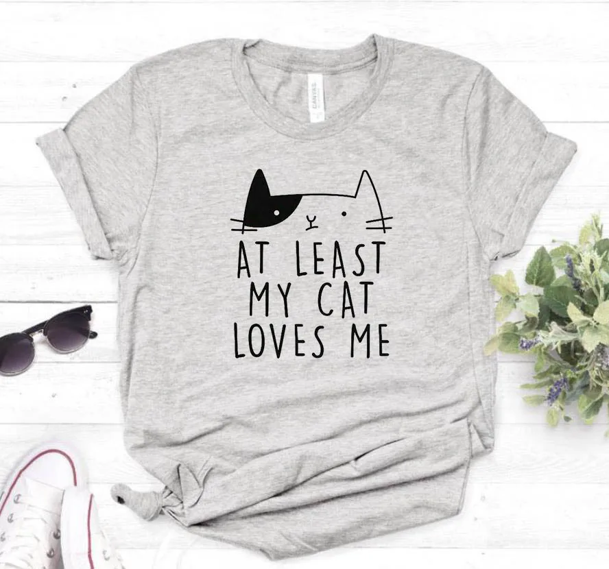 По крайней мере, женская футболка с принтом Моя кошка любит меня, повседневная хлопковая хипстерская забавная Футболка для леди, топ, футболка, 6 цветов, Прямая поставка, искусственная кожа