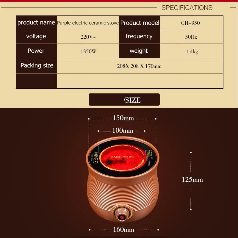 KAMJOVE CH-950 фиолетовая песчано-сияющая плита, чугунная чайная плита, приготовленный чайник, электрическая керамическая плита
