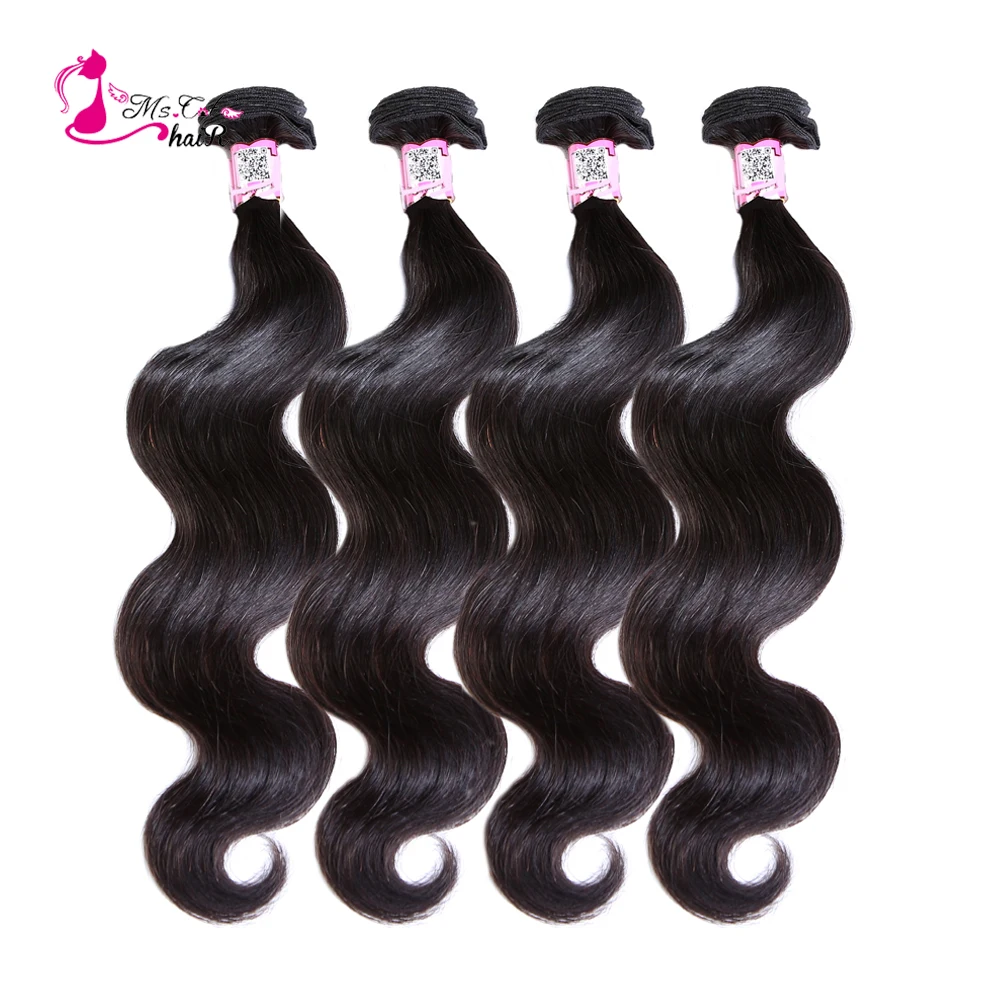 Ms Cat Hair индийская волнистая 1 пучок натуральных черных Remy 100% человеческих волос Бесплатная доставка можно купить 4 шт. для плетения волос