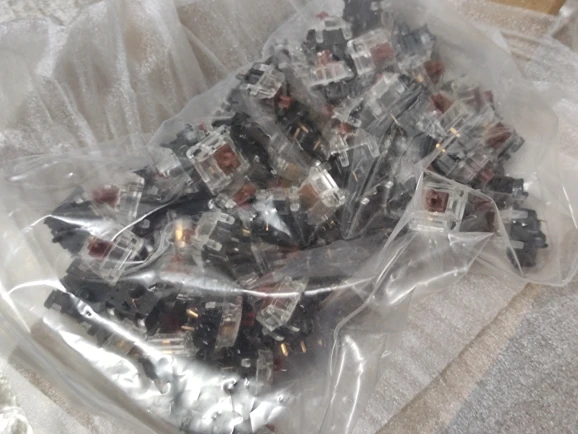 Товар пришел быстро, свитчи были упакованы в коробке, а в сами свитчи были в пакетике, свитчей было больше чем заявлял продавец, все свитчи рабочие, сами свитчи похожие на синие звучанием, но по нажатиям на черные, проблем нету. Советую.