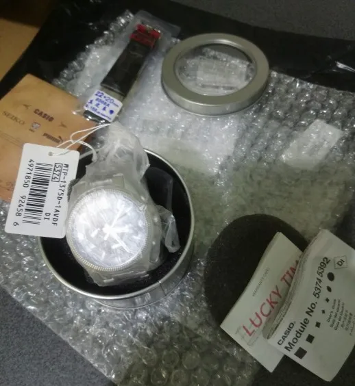 Пришли спустя 1 месяц и 2 дня, с ePacket посылки едут с восточной части России, сами часы на летней распродаже достались очень дёшево с купонами Али и продавца, за 3к, сами часы оригинальные, некоторые тут пишут, что это подделка, но это не так, даже весят точь в точь как оригинал, 124 грамма +0.5 грамма защитная пленка, которую продавец положил в подарок, с обеих сторон браслета убрал по одному звену и теперь часы сидят идеально, для хранения часов отдельно купил кейс, не подумайте, что он идёт в комплекте. Сами часы упакованы в металлическую банку, скорее всего для защиты самих часов во время пересылки, коробка с посылкой большая, много пупырчатой пленки, почта не сможет разбить или сломать ваши часы как бы они не старались, в общем, советую брать, но первым делом поищите у себя в городе, возможно найдёте дешевле чем тут.
