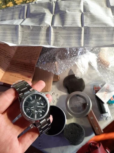 Я беспокоился из-за того, что по оценочным данным часы не являются оригинальными. И я проверил их, и если они есть! Они такие милые. Хорошее время доставки! Поставляется в коробке с инструментом для регулировки растяжимых звеньев! Очень хорошо!