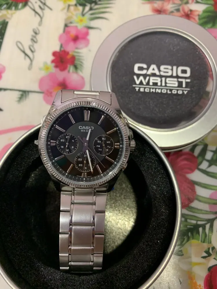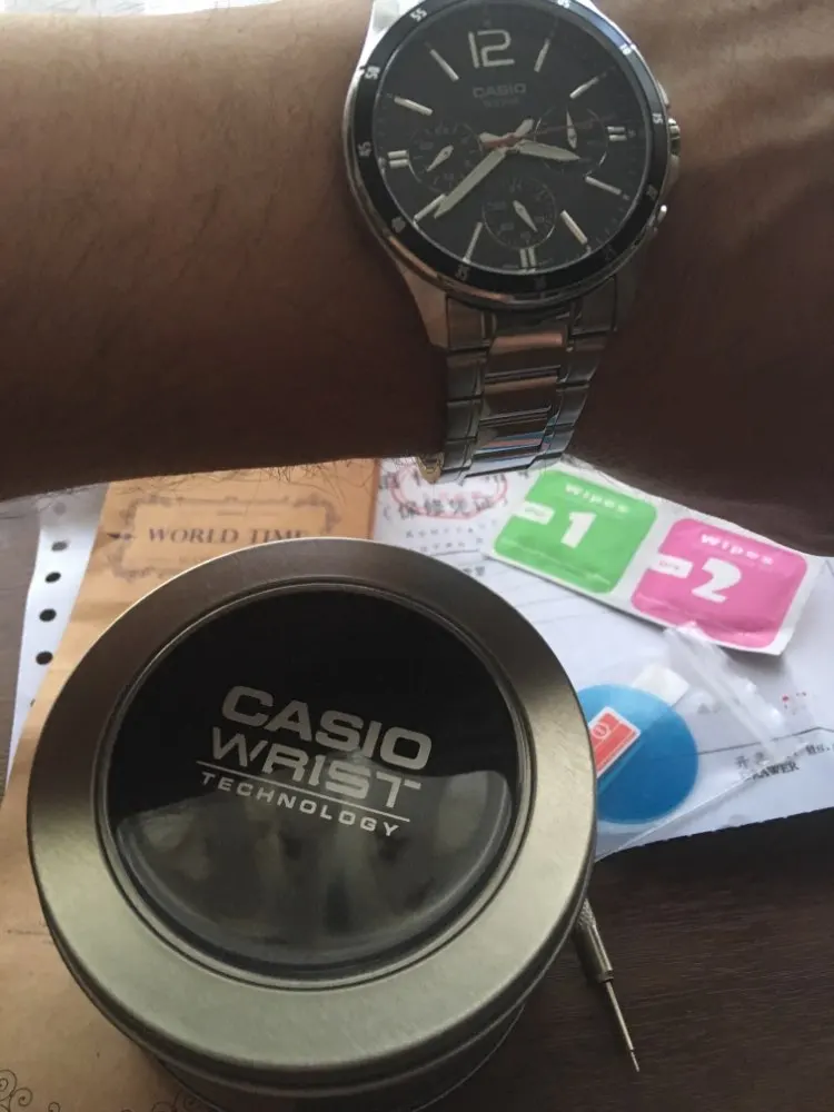 Отличные часы Casio. Прибыл с небольшой задержкой по причине праздников, но до сих пор так хорошо. Выглядит потрясающе, все руки работают гладко. Хорошо упакован, с металлической коробкой и дополнительным кожаным ремешком на запястье. Спасибо.