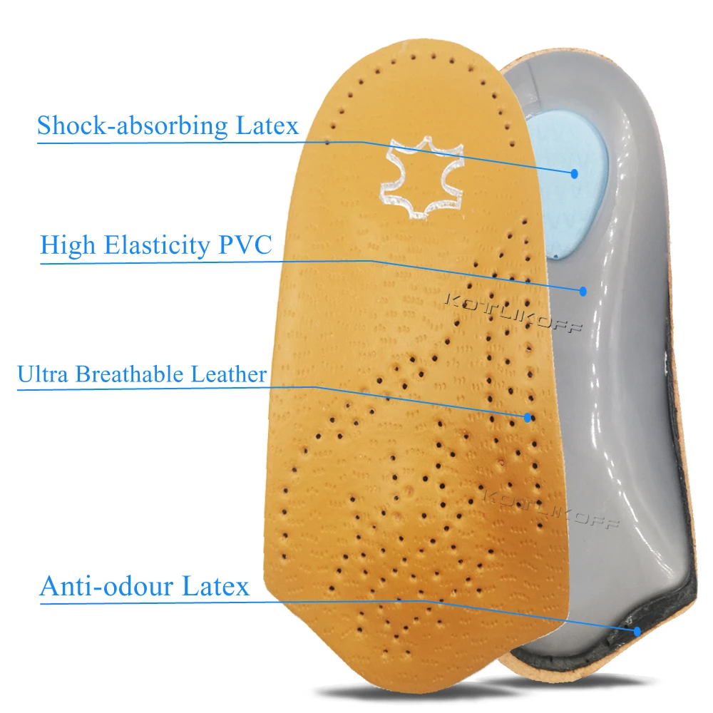 Кожаные ортопедические стельки, длина 34, для плоскостопия