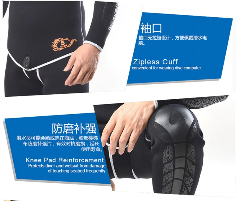 5 мм неопреновый гидрокостюм для подводной рыбалки, подводного плавания и подводного плавания, зимний теплый комплект из двух предметов с перчатками и носками 3 мм