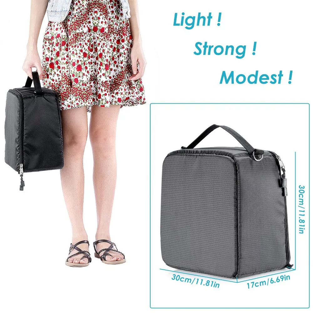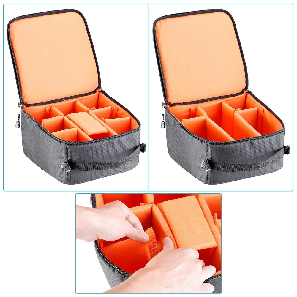Сумка-вкладыш отделяет корпус камеры и объективы от других вещей в сумочке или дорожном чехле.Он защищает ваши фотошестерни от царапин и столкновений.Подходит для систем камер GoPro, профессиональных вспышек с башмаком, радиотриггеров, беззеркальных камер и объективов, аккумуляторов и зарядных устройств, кабелей и других аксессуаров.Подушки с застежкой-липучкой внутри сумки съемные и регулируемые. Она может быть сконструирована из 7 небольших перегородок, каждая из которых может безопасно разместить содержимое.