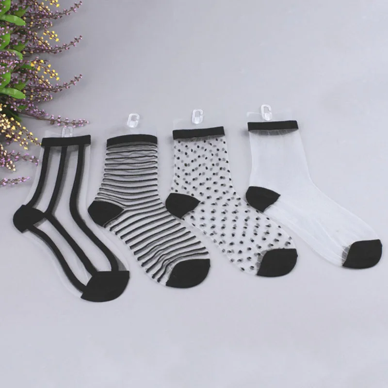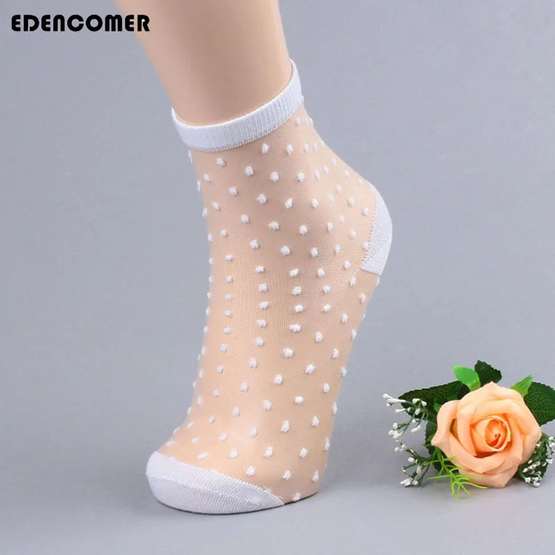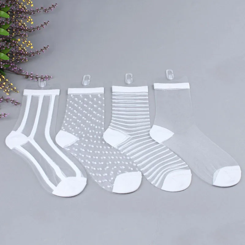 Носки женские короткие с прозрачными кристаллами, 4 парыЛот, 2019 чистый шелк, кружевные, белые, корейский носок