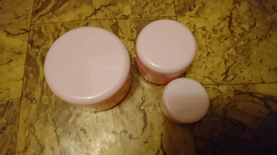 доставка около месяца.упаковано отлично,баночки из хорошего пластика.