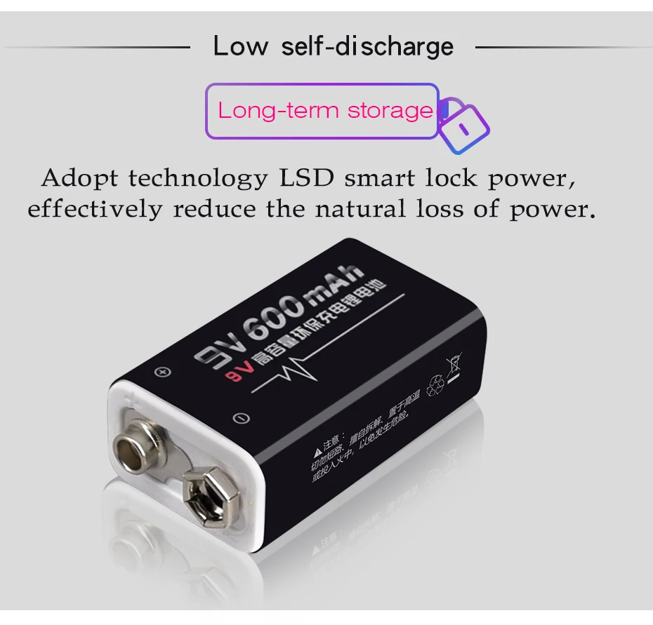 Зарядное устройство PALO 9 В для литий-ионных аккумуляторов 6F22, 4 шт., 9 В, 600 мАч