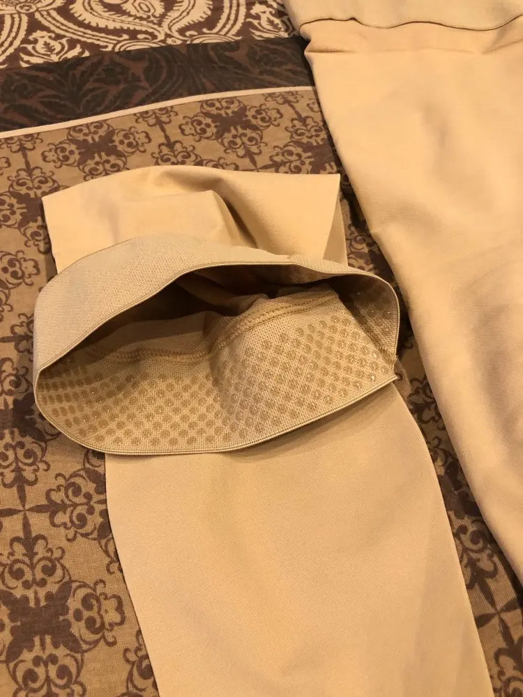 Все хорошо, продукт точно соответствует описанию. Я 170 см и размер М в порядке, однако надевать их можно просто. Но я думаю, что это нормально для компрессионного типа чулок. У меня нет большого сравнения, это моя первая пара когда-либо. Сверху имеется резина, чтобы предотвратить скольжение. Ткань хорошего качества, приятная и непрозрачная. В целом я очень доволен.