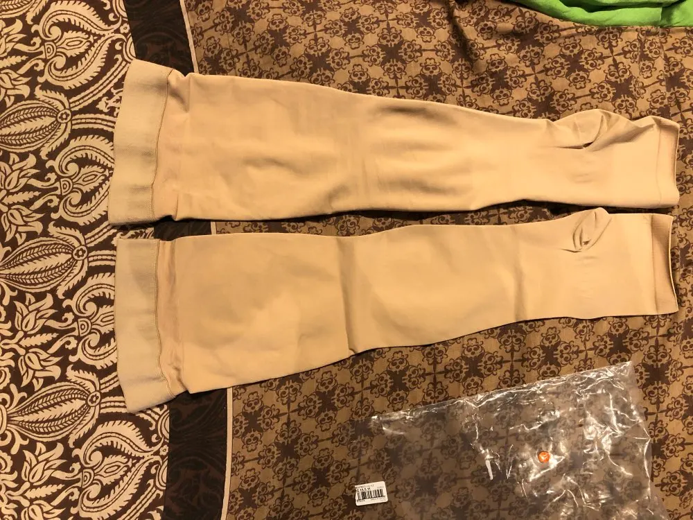 Всё отлично,для роста 182 см натянулись до середины бедра точно,альтернатива эластичным бинтам (после операции),в магазинах что-то подобное продают по 1700 р. за штуку,продавцу лучшие рекомендации (!)