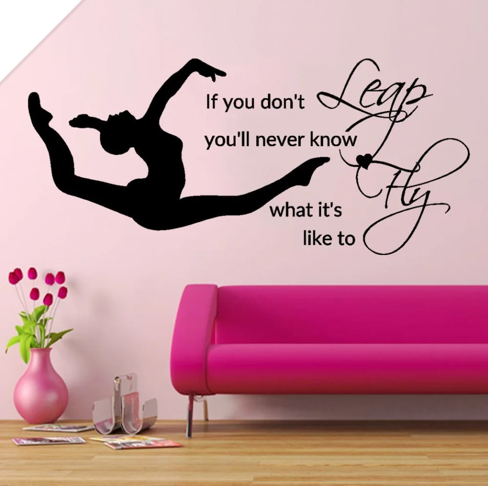 Leap Fly Девушка Спальня наклейка гимнастика виниловые наклейки Muraux постельное белье Декор цитаты Спорт искусство трафареты для стен DIY SYY034