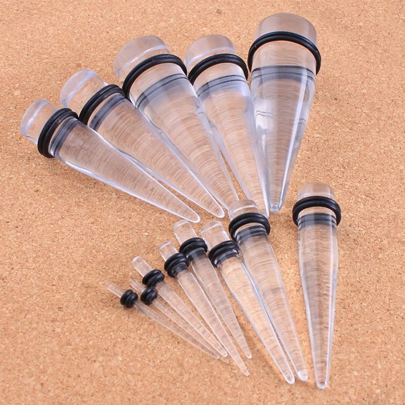 Пара прозрачных черных ушных конусов, растягиватель, расширитель, акриловый пирсинг