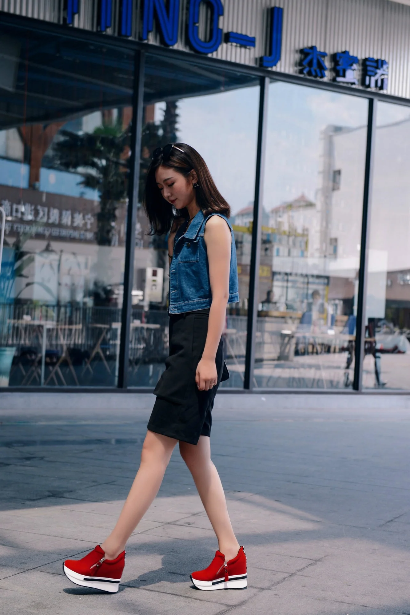 Новинка; Сезон весна-2020 года; Женская повседневная обувь на танкетке; Дышащие кроссовки на молнии, визуально увеличивающие рост; Женская летняя прогулочная обувь на плоской подошве; Кроссовки