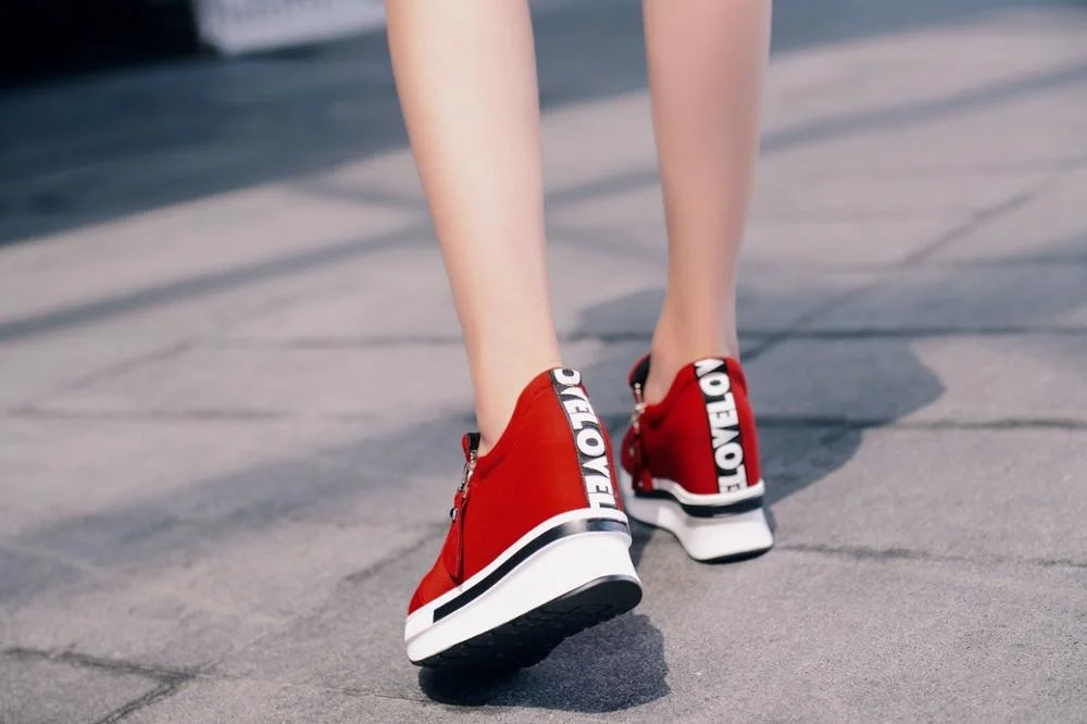 Женские кроссовки на танкетке, Прогулочные кроссовки на плоской под...