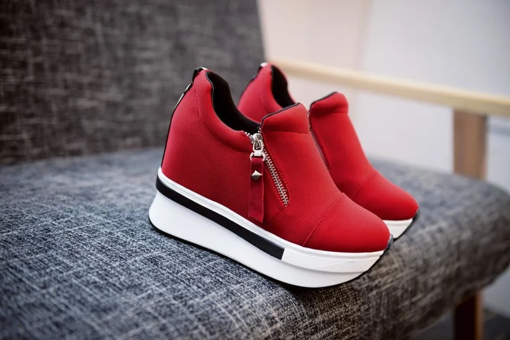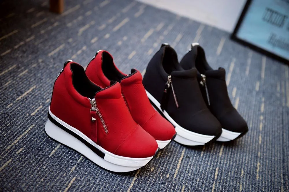Женская повседневная обувь на танкетке; Кроссовки на молнии, визуал...