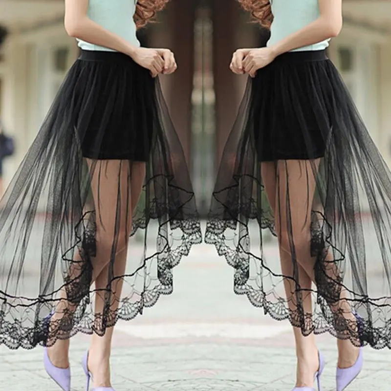 2016 винтажная Женская эластичная кружевная юбка с высокой талией, женское расклешенное плиссированное платье с коротким и широким подолом, Длинная летняя юбка