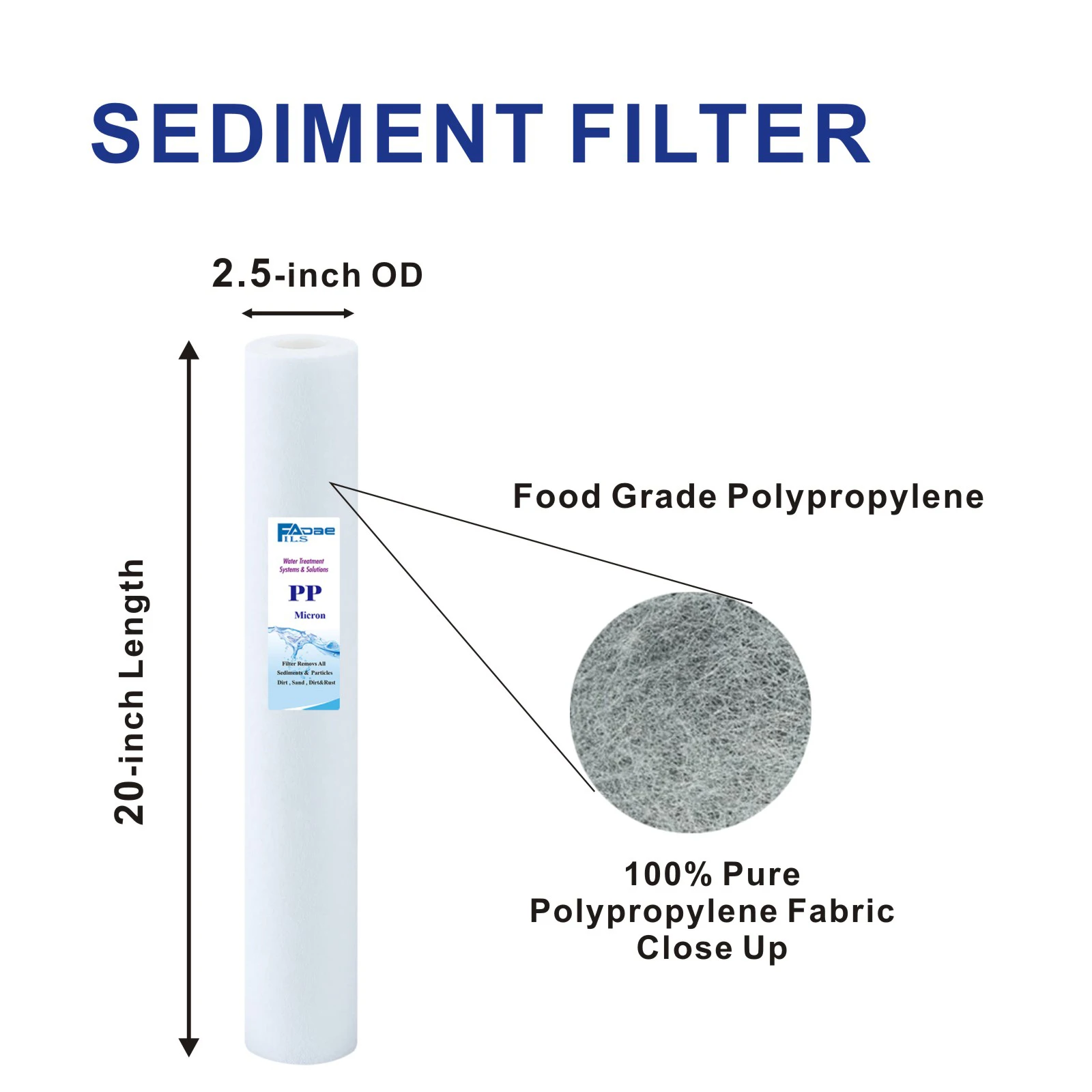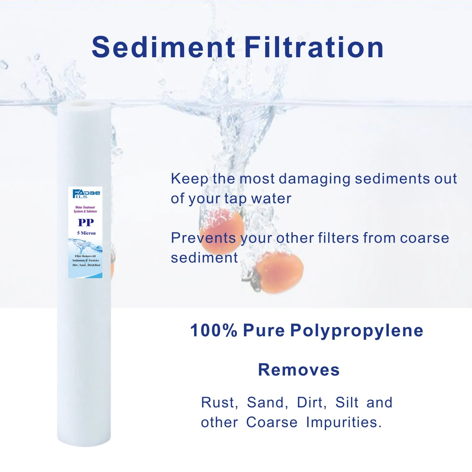 Фильтр для воды Dirt отложения ржавчины, Сменные картриджи FILSADAE 10 микрон изготовлены из расплавленного полипропилена. Эти полипропиленовые фильтры для воды уменьшают осадки, грязь, песок, ил, ржавчину, накипи и другие загрязнения в вашей воде. И предлагает отличную химическую стойкость и высокую грязеудерживающую способность, это также надежное и экономичное решение для предварительной фильтрации во многих приложениях. Обычно используется для предварительной фильтрации в системах обратного осмоса и после фильтрации в фильтрах GAC