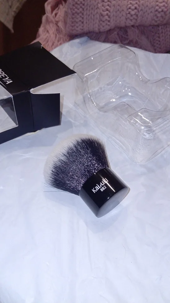 Очень мягкий и мне нравится. Я использую его для нанесения пудры на свой. Единственный минус в том, что кисть иногда электрифицируется. Время доставки в порядке, упаковка была немного повреждена, что надавливается на щетку, но она была восстановлена.